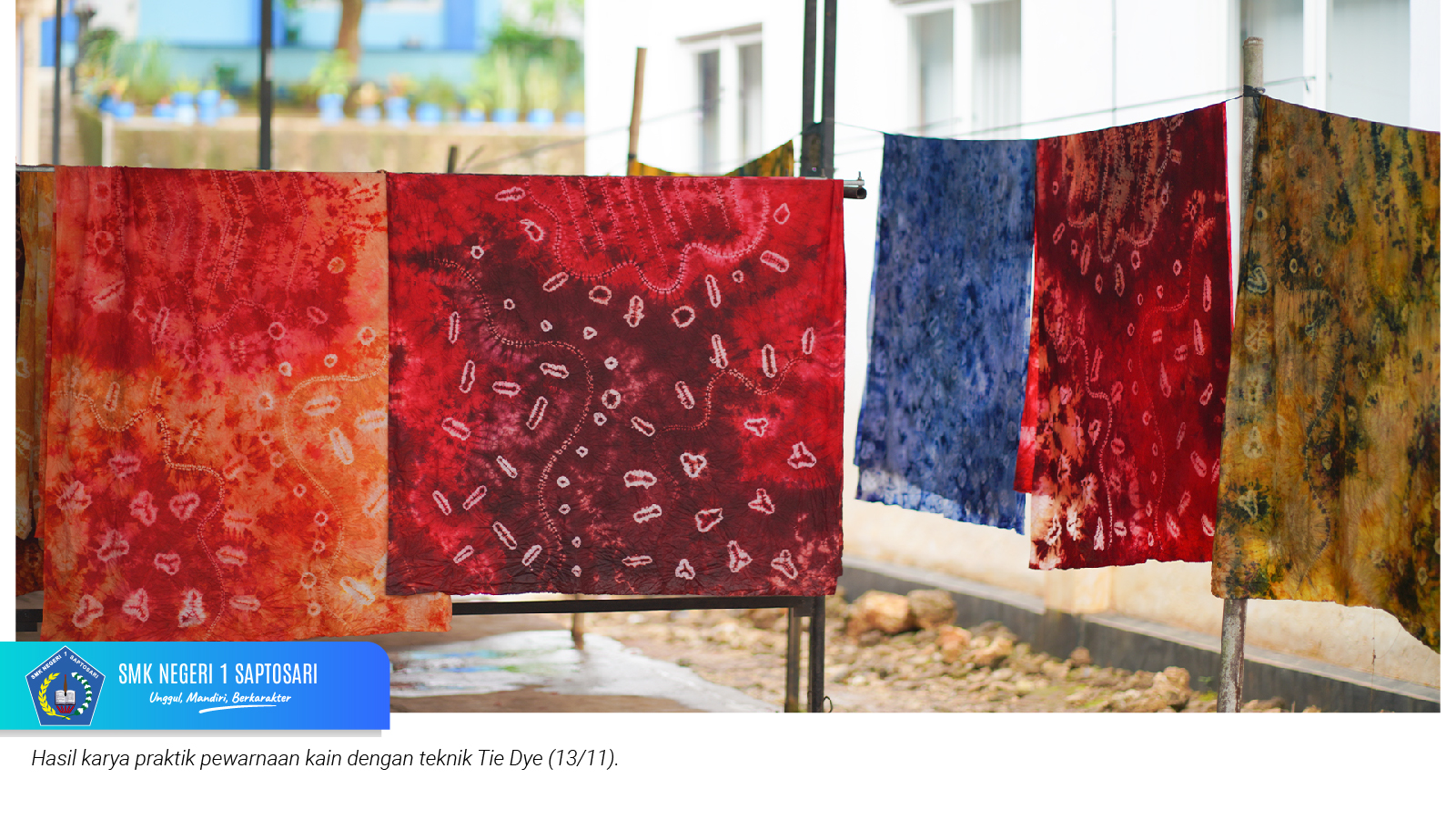 www.smkn1saptosari.sch.id (GUNUNGKIDUL). SMKN 1 Saptosari terus mendorong pembelajaran yang relevan dan selaras dengan perkembangan dunia industri. Salah satu wujud nyata dari upaya tersebut adalah kegiatan Belajar Bersama Industri yang kali ini mengangkat tema “Eksplorasi Tekstil – Tie Dye”.