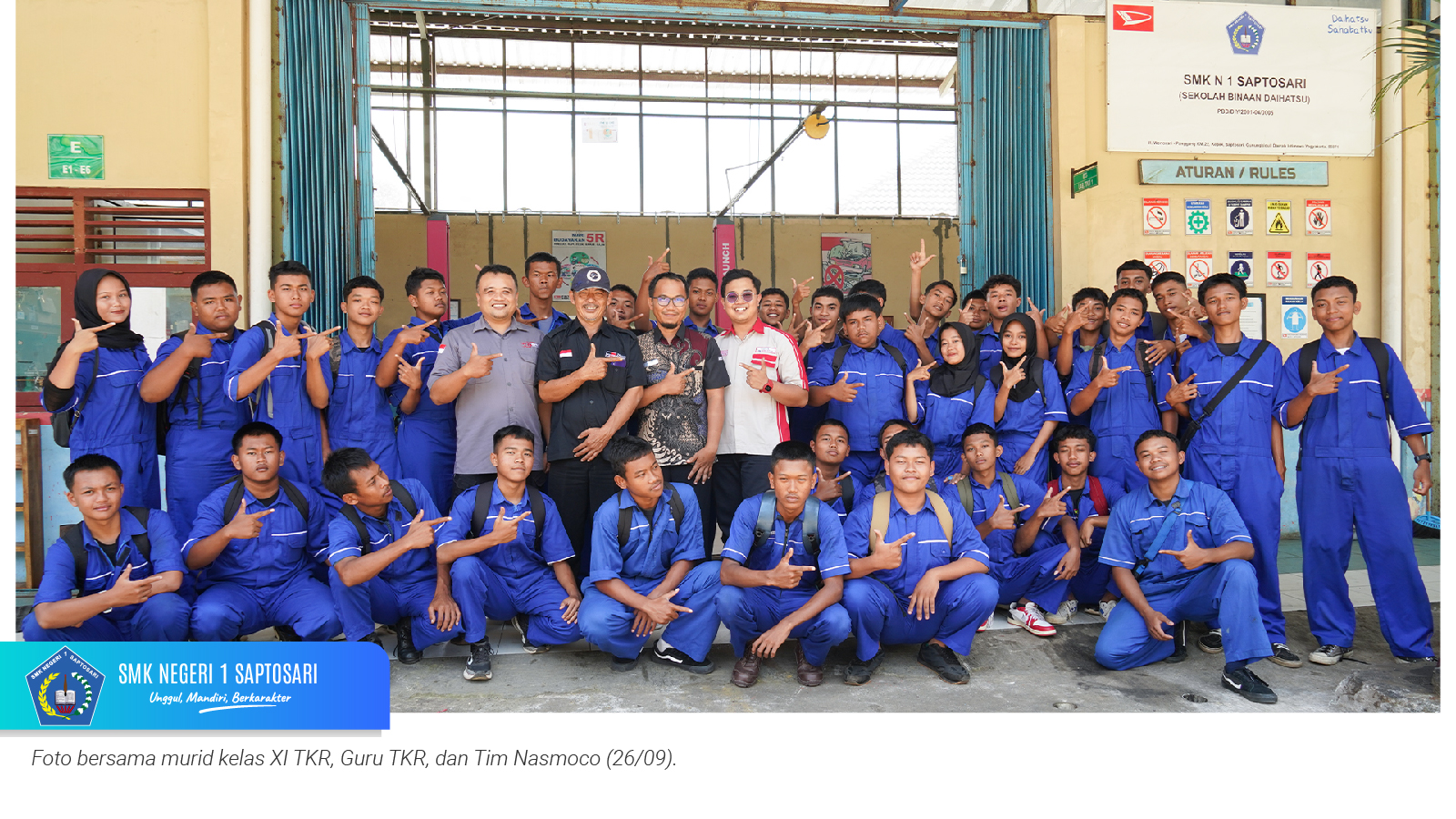 www.smkn1saptosari.sch.id (GUNUNGKIDUL). SMKN 1 Saptosari bekerjasama dengan PT Nasmoco Bahtera Motor Cabang Janti kembali menggelar kegiatan Nasmoco Goes to Skatusa pada Jumat (26/9/2025). Kegiatan ini menjadi wujud nyata implementasi program link and match antara sekolah dengan dunia industri.