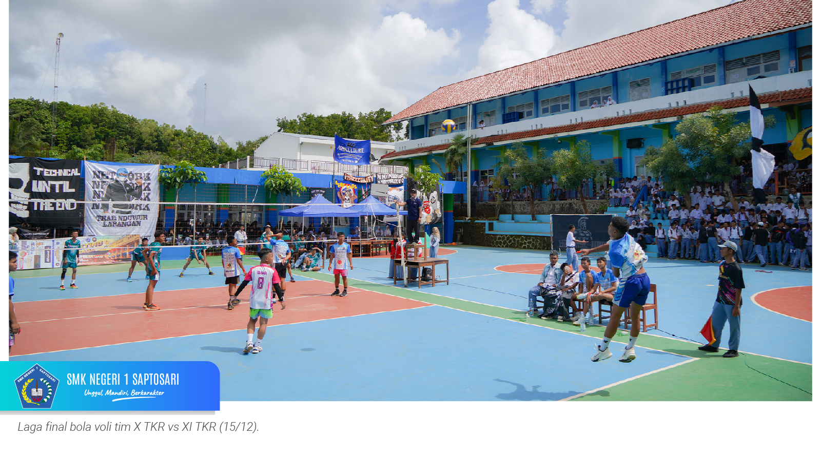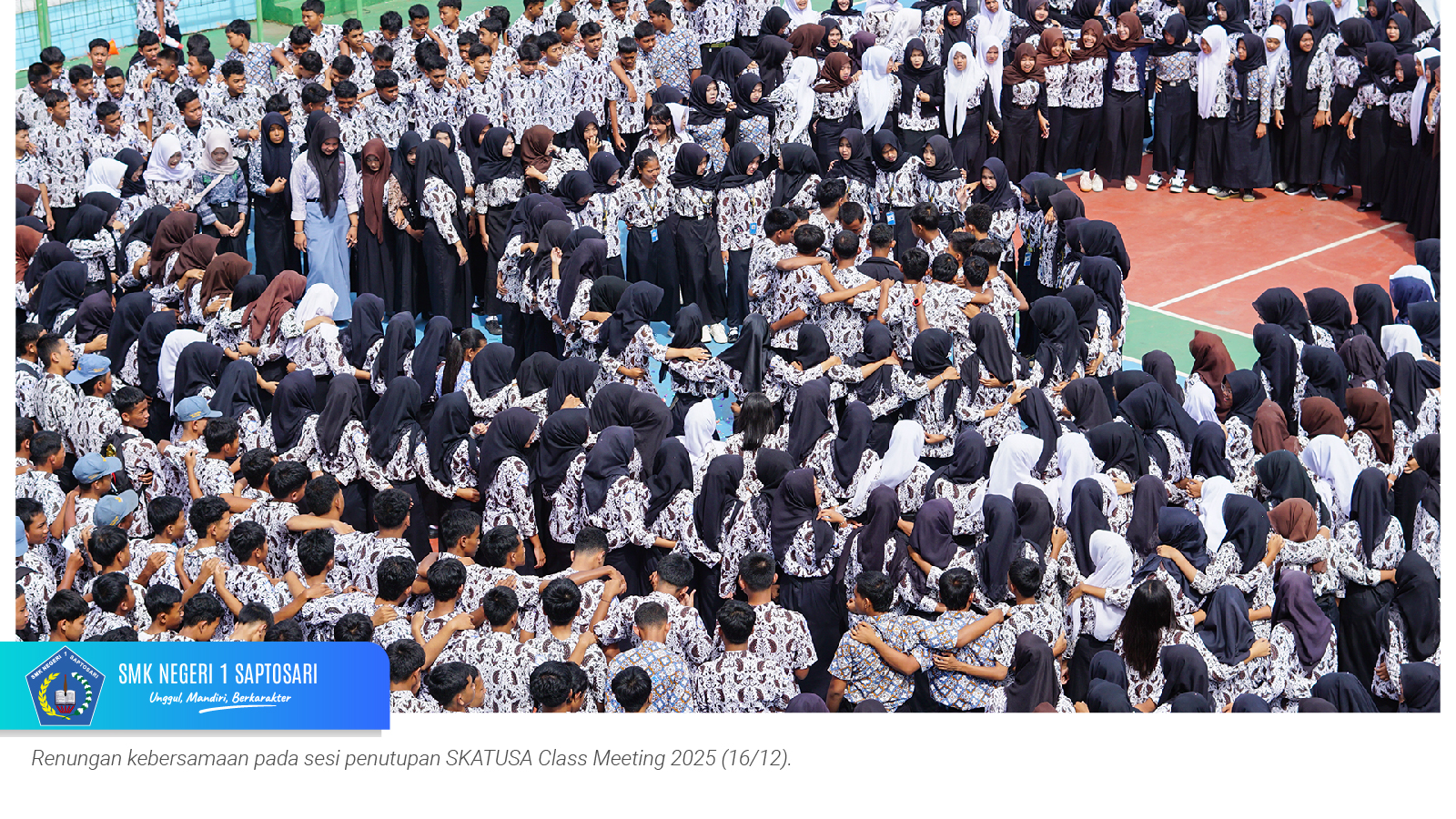 www.smkn1saptosari.sch.id (GUNUNGKIDUL). OSIS SMKN 1 Saptosari sukses menyelenggarakan SKATUSA Class Meeting 2025 yang berlangsung pada 10–15 Desember 2025. Kegiatan ini menjadi ajang penutup Semester Gasal sekaligus sarana pengembangan karakter, minat, dan bakat peserta didik di bidang olahraga.