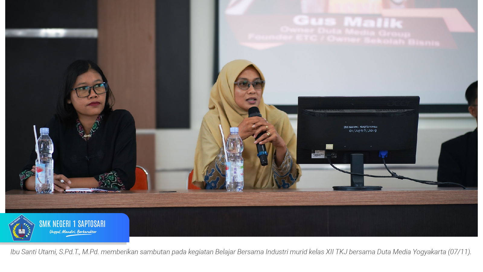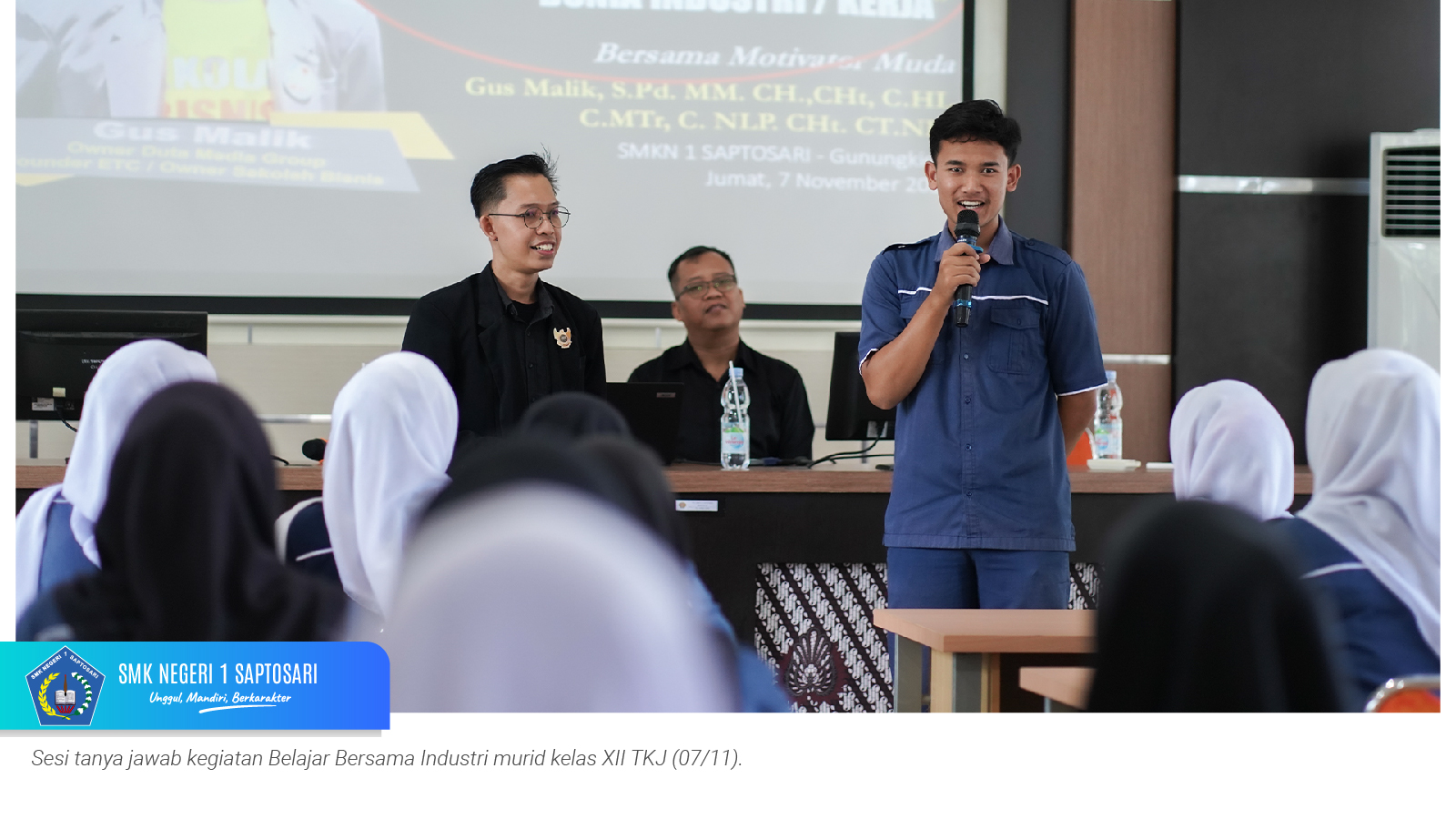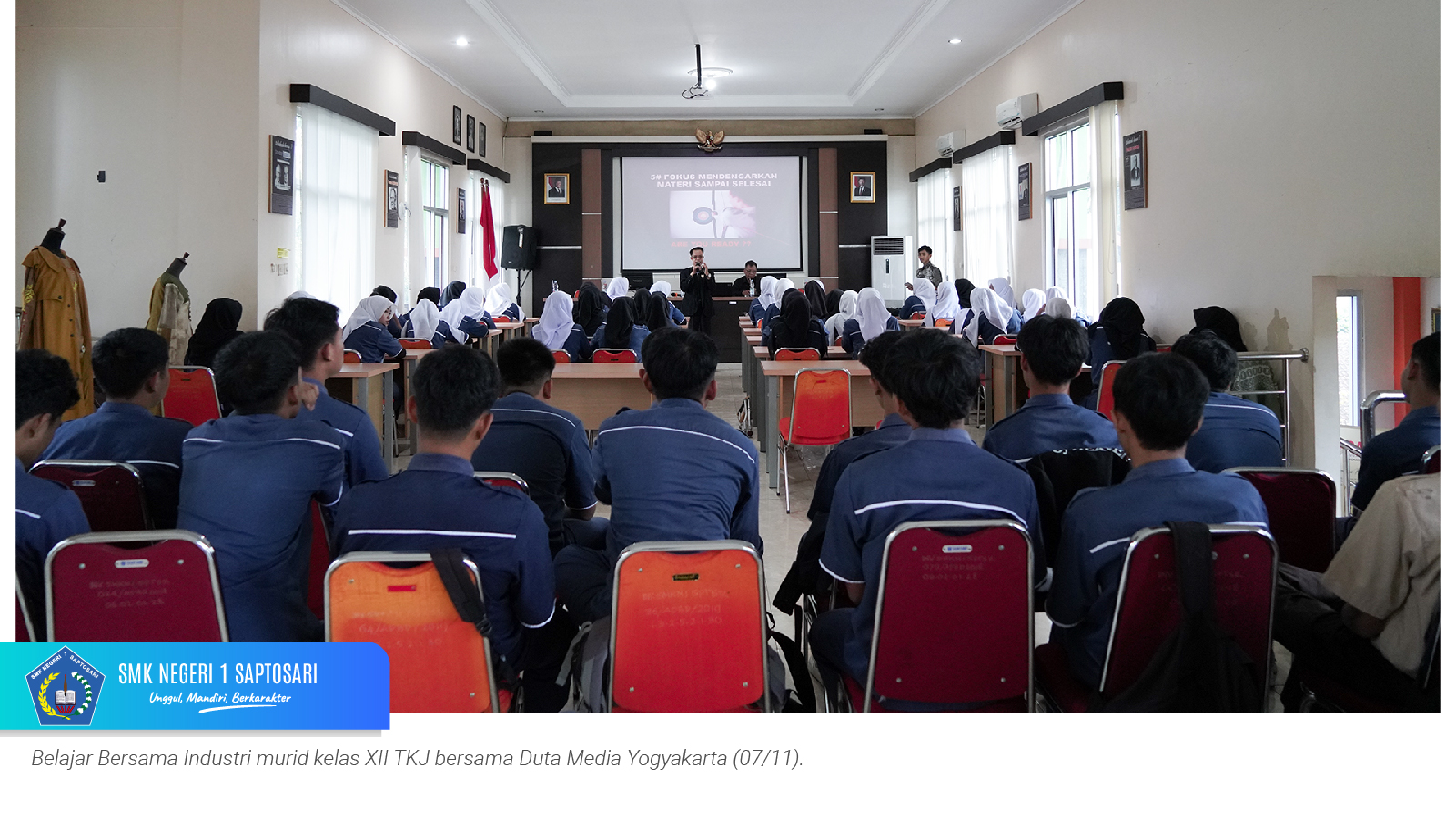 www.smkn1saptosari.sch.id (GUNUNGKIDUL). Dalam upaya mempersiapkan murid agar siap menghadapi dunia kerja sekaligus sebagai bekal menjelang pelaksanaan Praktik Kerja Lapangan (PKL), SMKN 1 Saptosari menggelar kegiatan Belajar Bersama Industri bagi murid kelas XII Konsentrasi Keahlian Teknik Komputer dan Jaringan (TKJ), pada Jumat (7/11/2025).