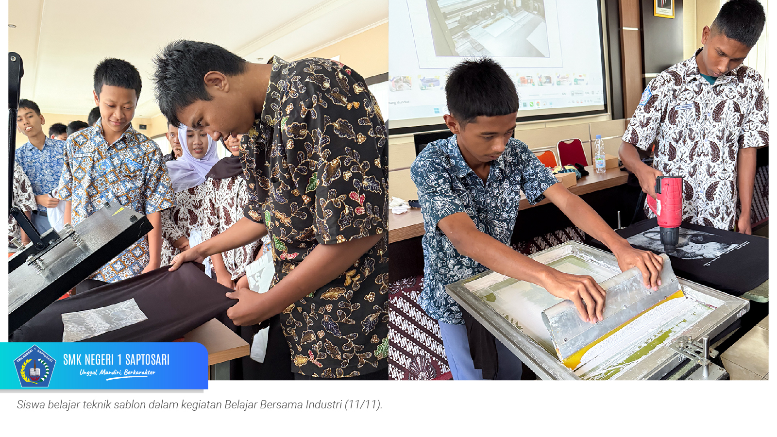 Antusiasme peserta tampak dari semangat mereka mengikuti sesi praktik menyablon secara langsung. Siswa berkesempatan merancang desain, mengaplikasikannya, hingga melihat hasil akhir berupa produk kaos sablon buatan mereka sendiri.