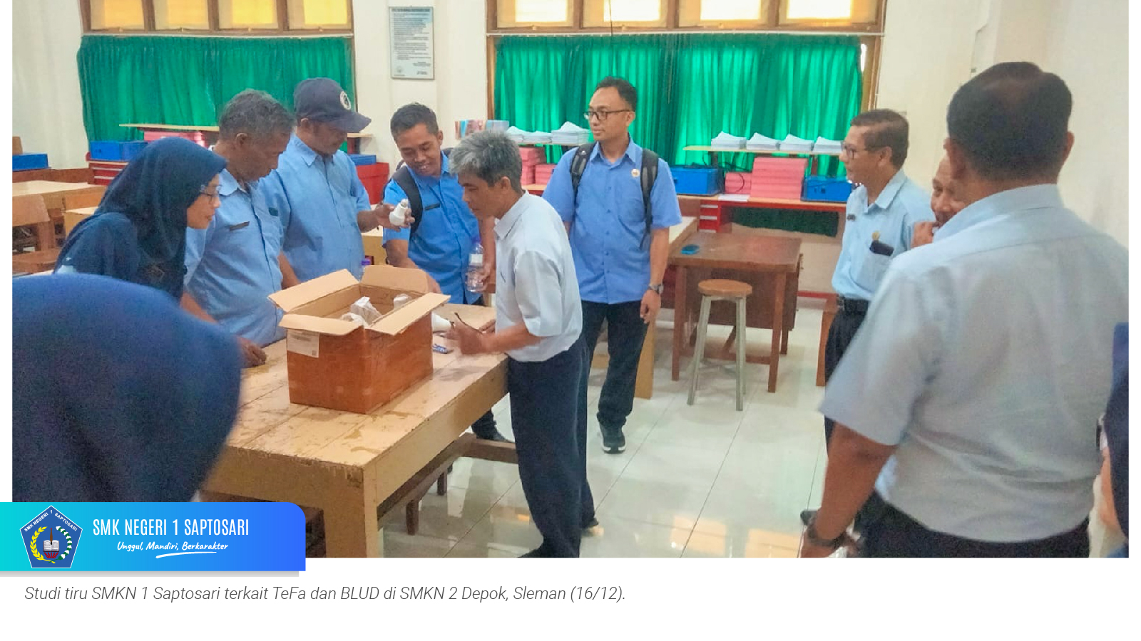 www.smkn1saptosari.sch.id (GUNUNGKIDUL). Dalam rangka memperkuat implementasi Teaching Factory (TeFa) dan Badan Layanan Umum Daerah (BLUD), SMKN 1 Saptosari melaksanakan kunjungan kerja dan studi tiru ke dua sekolah menengah kejuruan unggulan di Daerah Istimewa Yogyakarta, yakni SMKN 6 Yogyakarta dan SMKN 2 Depok, Sleman, pada 15–16 Desember 2025.