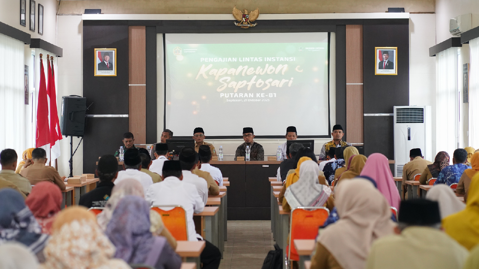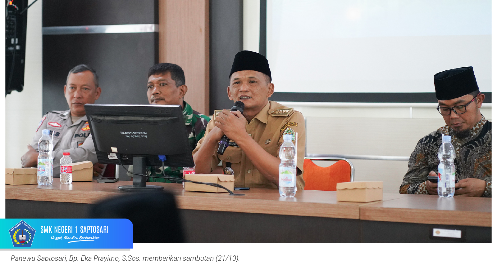www.smkn1saptosari.sch.id (GUNUNGKIDUL). SMKN 1 Saptosari kembali menjadi tuan rumah kegiatan Pengajian Lintas Instansi Kapanewon Saptosari putaran ke-81 yang diselenggarakan pada Selasa, 21 Oktober 2025, di Aula Sasana Amarta SKATUSA. Kegiatan ini dihadiri oleh Forkompinkap Saptosari, serta perwakilan dari berbagai instansi, dinas, kalurahan, dan lembaga se-Kapanewon Saptosari.