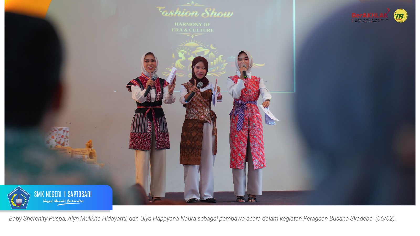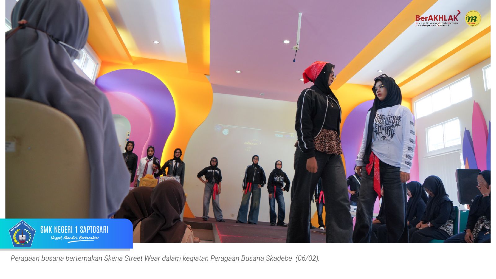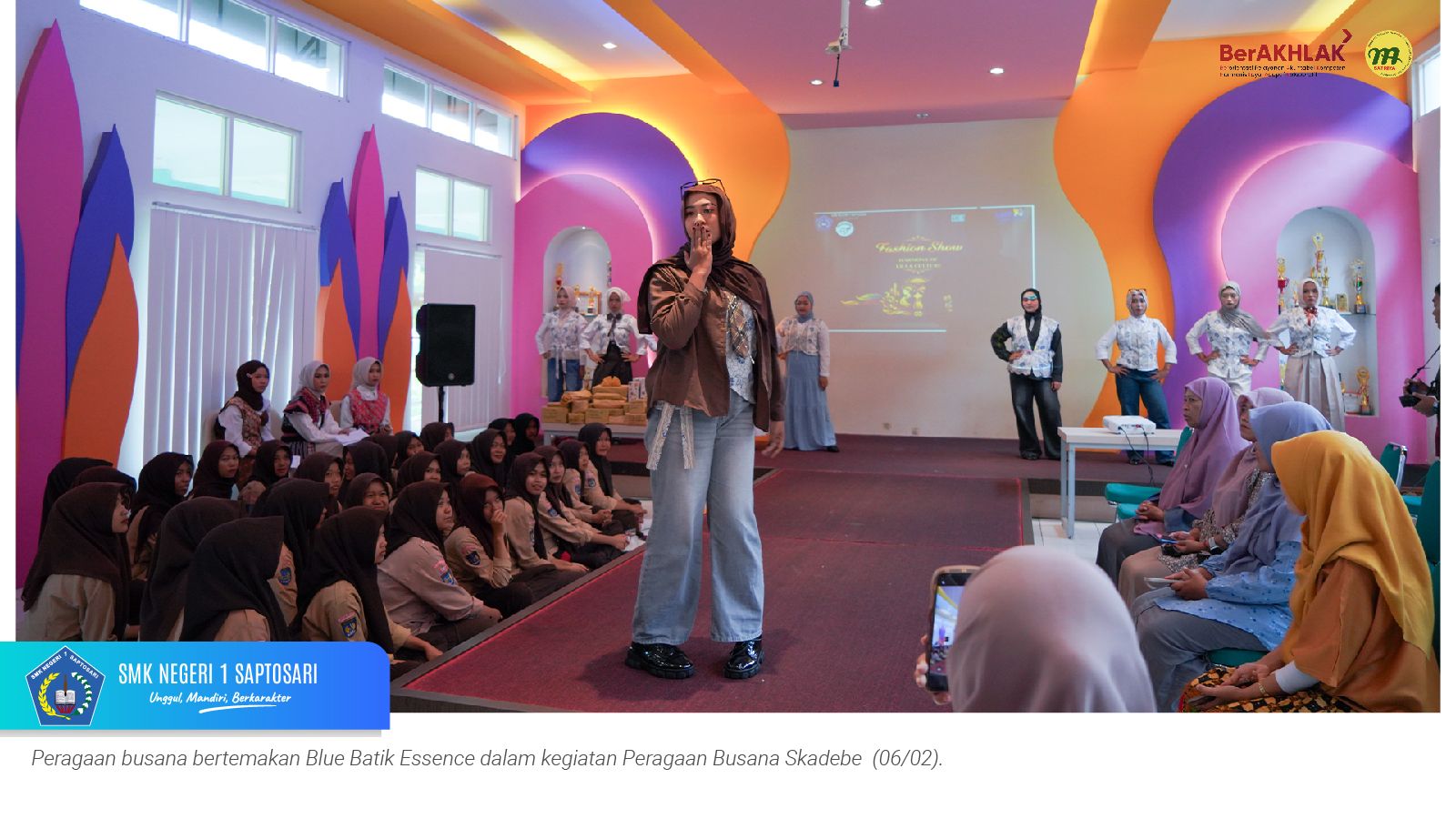 www.smkn1saptosari.sch.id (GUNUNGKIDUL). Siswa kelas XI Konsentrasi Keahlian Desain dan Produksi Busana B (DPB) SMKN 1 Saptosari sukses menyelenggarakan kegiatan fashion show bertajuk Peragaan Busana Skadebe yang digelar di Atrium Catwalk Fashion Factory Lab, Jum’at (6/2/2026).