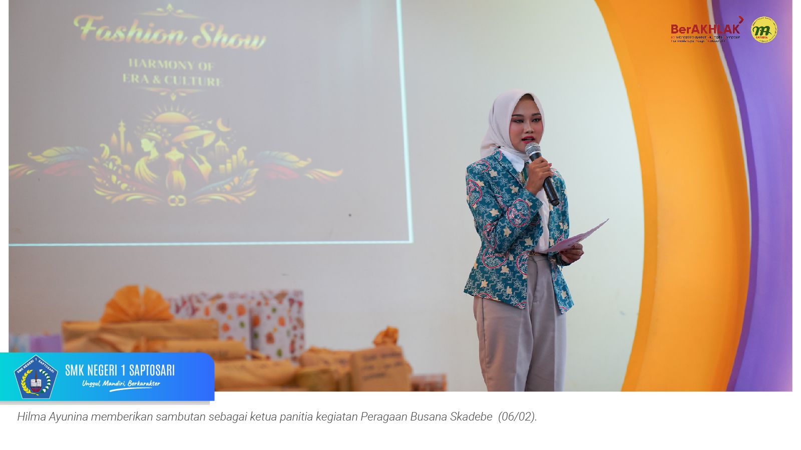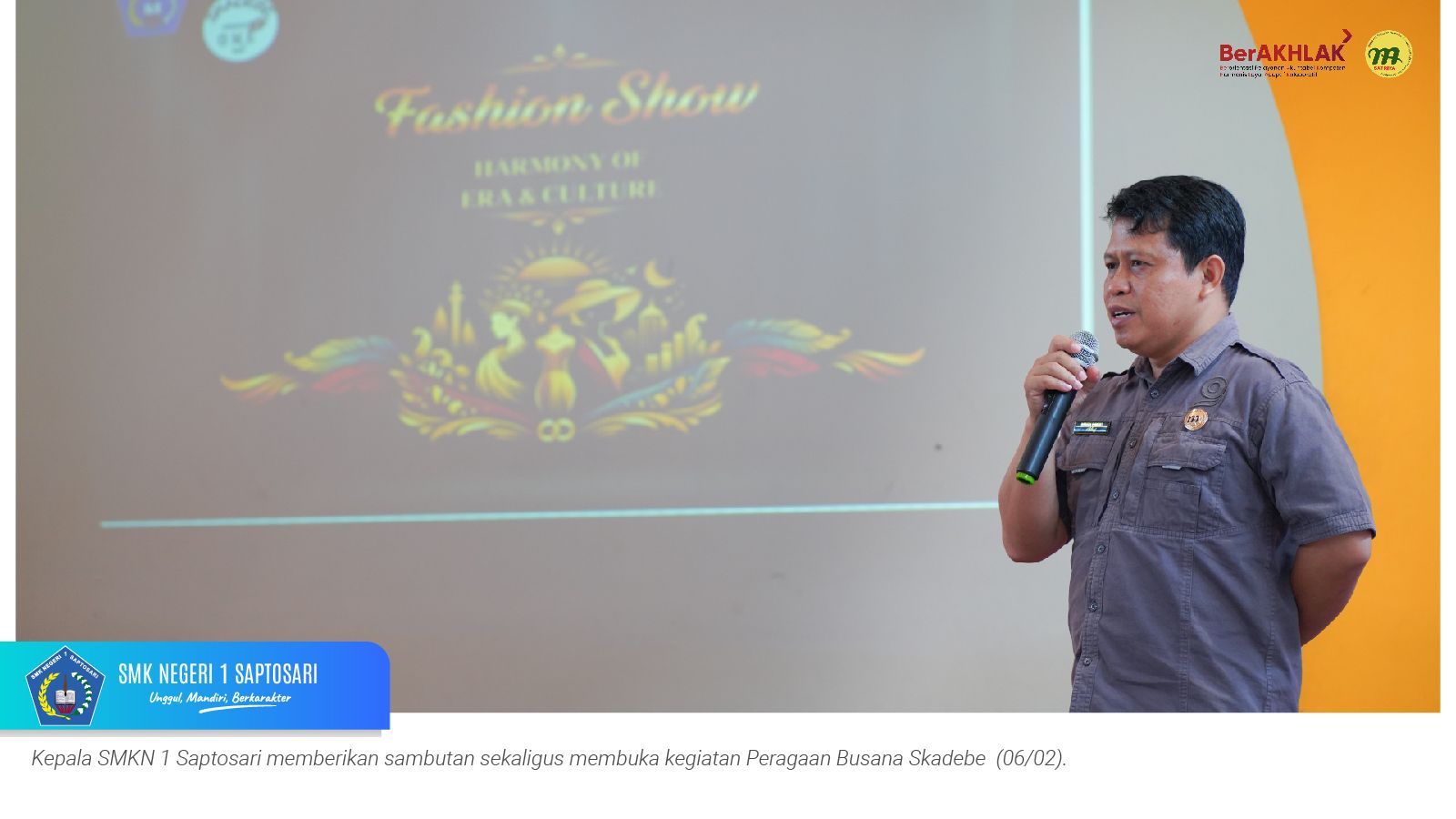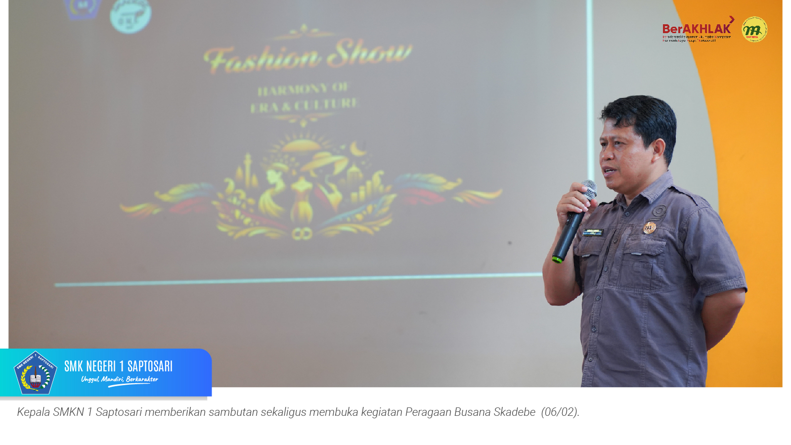 www.smkn1saptosari.sch.id (GUNUNGKIDUL). Siswa kelas XI Konsentrasi Keahlian Desain dan Produksi Busana B (DPB) SMKN 1 Saptosari sukses menyelenggarakan kegiatan fashion show bertajuk Peragaan Busana Skadebe yang digelar di Atrium Catwalk Fashion Factory Lab, Jum’at (6/2/2026).