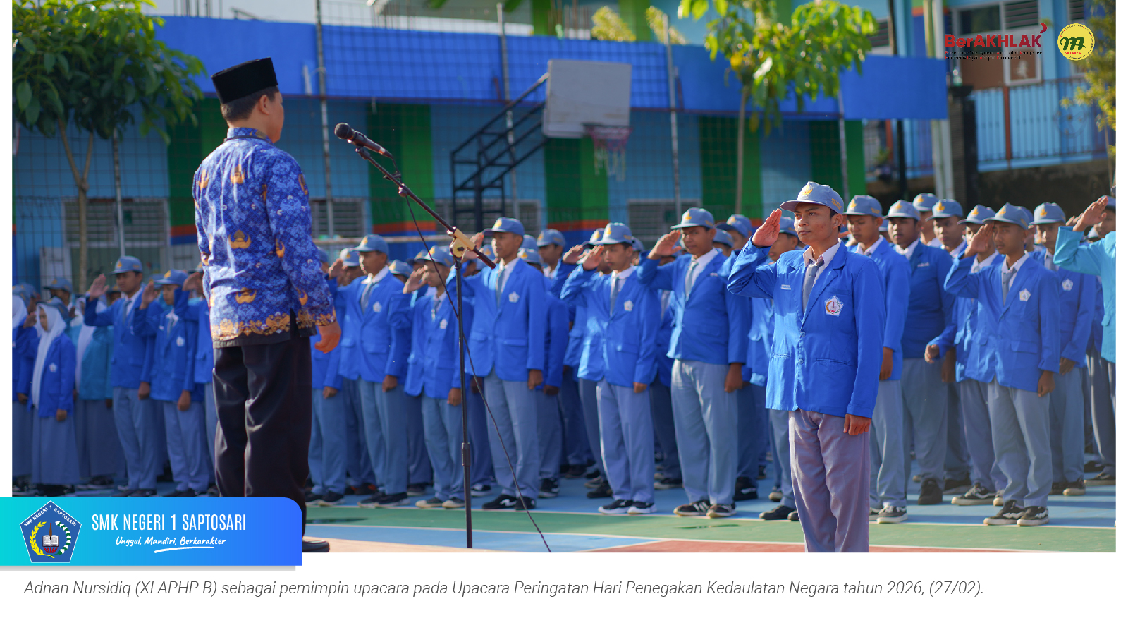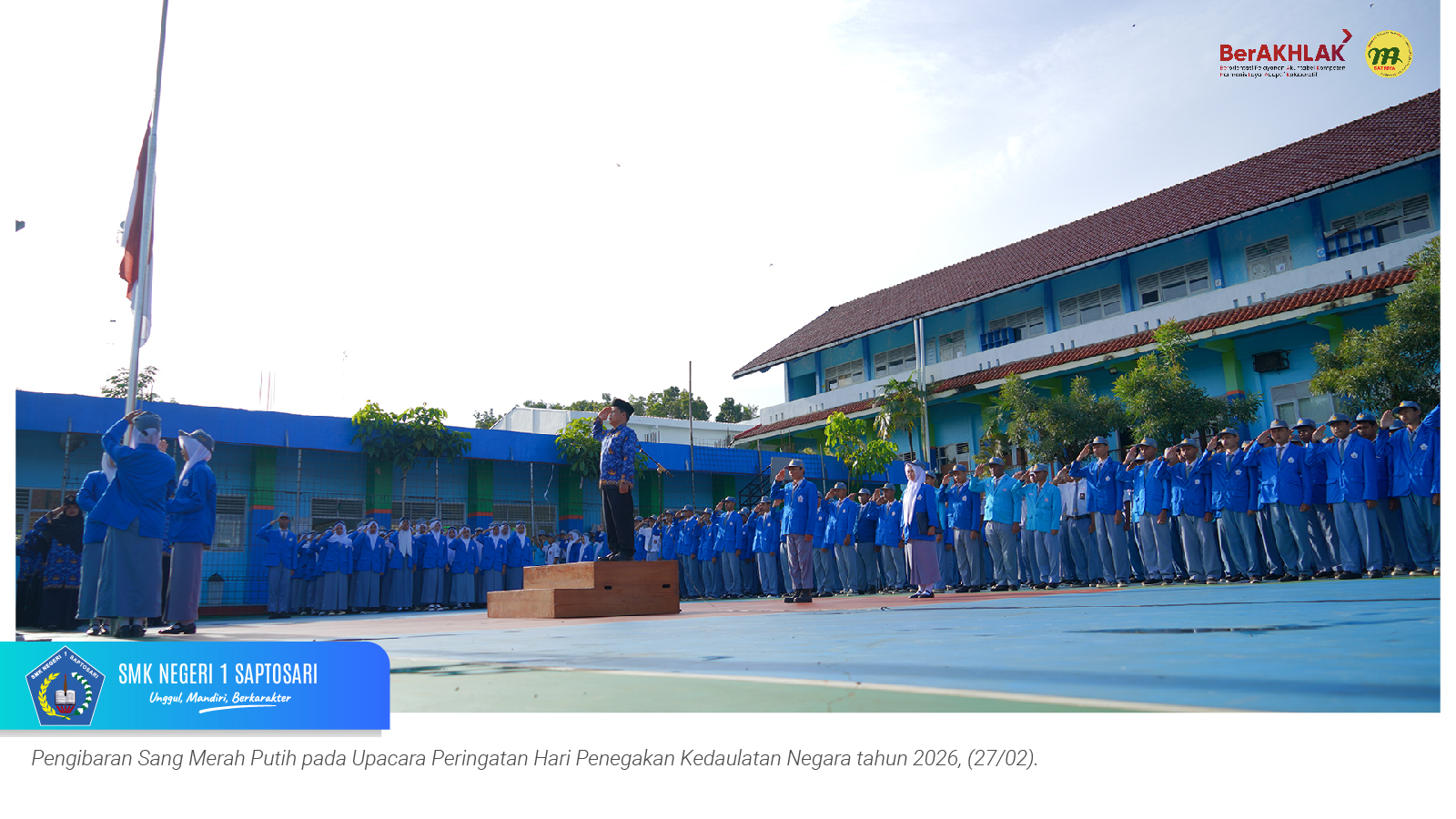 www.smkn1saptosasri.sch.id (GUNUNGKIDUL). SMKN 1 Saptosari melaksanakan upacara Peringatan Hari Penegakan Kedaulatan Negara pada Minggu (1/3/2026) di lapangan upacara SKATUSA Kegiatan ini diselenggarakan merujuk pada Edaran Pelaksanaan Upacara Peringatan Hari Penegakan Kedaulatan Negara Tahun 2026 dari Pemerintah Daerah Daerah Istimewa Yogyakarta Nomor: B/400.14.1.1/4/BR.7 tertanggal 20 Februari 2026.