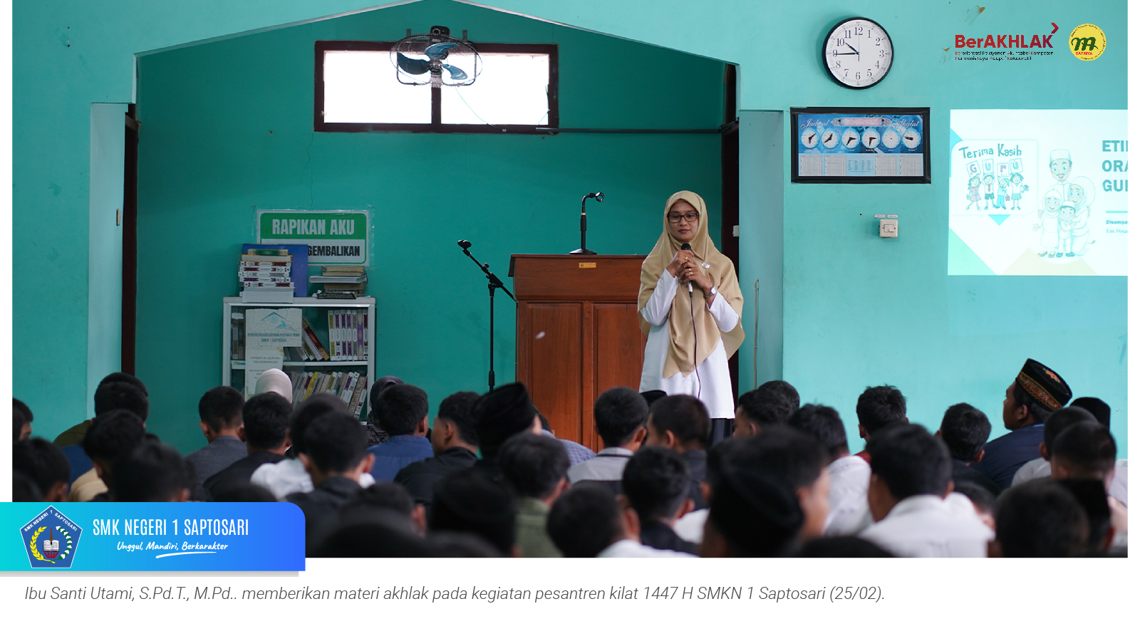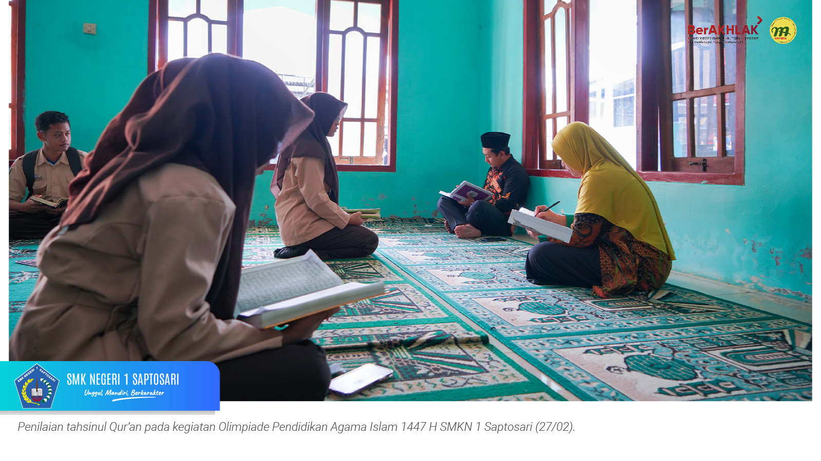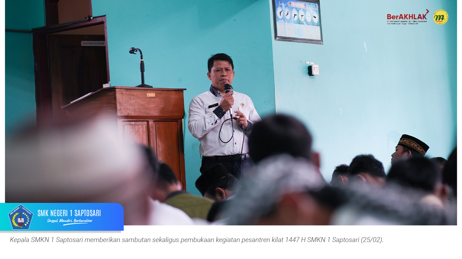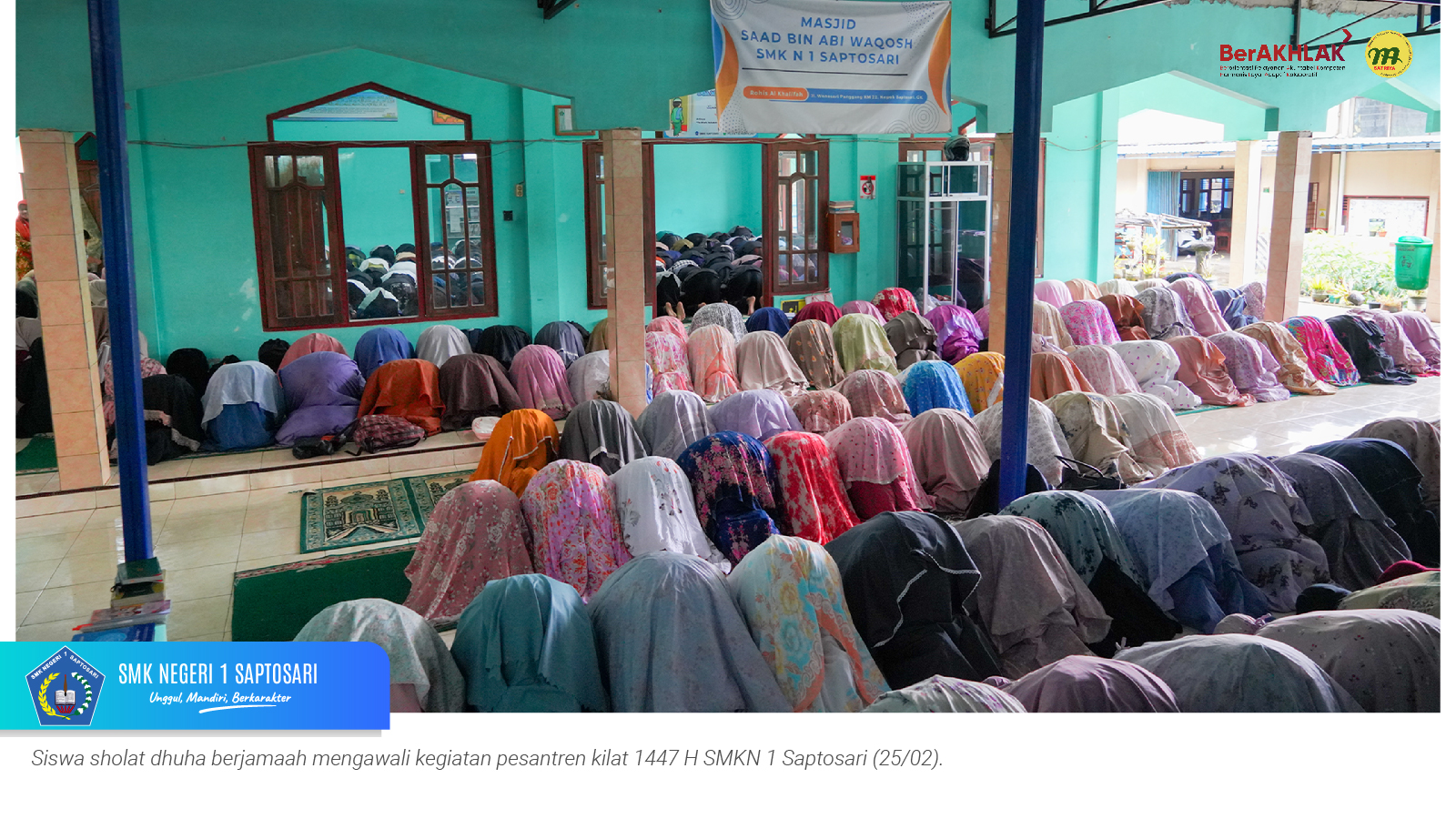 www.smkn1saptosari.sch.id (GUNUNGKIDUL). Dalam rangka mengisi bulan suci Ramadhan 1447 H, SMKN 1 Saptosari menyelenggarakan berbagai kegiatan keagamaan yang berlangsung pada 25–27 Februari 2026. Kegiatan tersebut meliputi Pesantren Kilat dan Olimpiade Pendidikan Agama Islam (PAI) yang diikuti oleh siswa Muslim sebagai bagian dari pembinaan karakter religius di lingkungan sekolah.