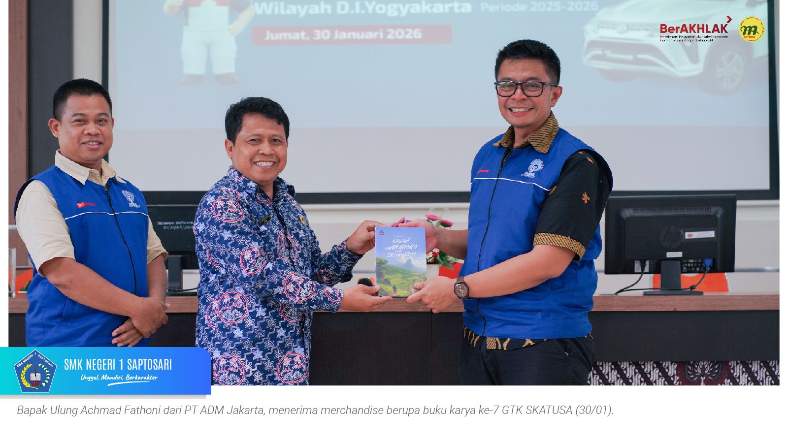 www.smkn1saptosari.sch.id (GUNUNGKIDUL). PT. Astra Daihatsu Motor (ADM) melakukan visitasi asesmen Akreditasi Level SMK Binaan Program Pintar Bersama Daihatsu (PBD) Wilayah Daerah Istimewa Yogyakarta di SMK Negeri 1 Saptosari (SKATUSA), Jumat (30/12/2026). Kegiatan ini bertujuan menilai konsistensi pelaksanaan program PBD serta manfaatnya bagi sekolah binaan selama periode 2025–2026.