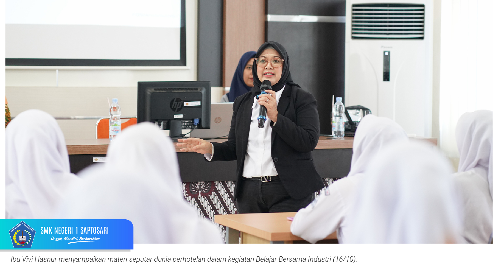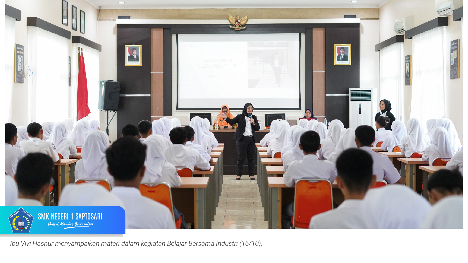 Pada Kamis, 16 Oktober 2025, SMKN 1 Saptosari menggelar kegiatan Belajar Bersama Industri dengan tema “Becoming a True Hotelier, from Passion to Profession” yang berlangsung di Aula Sasana Amarta. Kegiatan ini diikuti oleh murid kelas X dan XI konsentrasi keahlian Perhotelan, dengan menghadirkan narasumber Ibu Vivi Hasnur, selaku Corp. HR & Legal FortunaSuites Malioboro Yogyakarta.