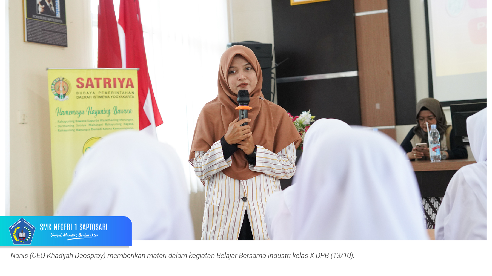 www.smkn1saptosari.sch.id (GUNUNGKIDUL). SMKN 1 Saptosari menggelar kegiatan Guru Tamu bertajuk Belajar Bersama Industri yang diikuti oleh murid kelas X Konsentrasi Keahlian Desain dan Produksi Busana. Kegiatan ini berlangsung di Aula Sasana Amarta Skatusa pada Senin, 13 Oktober 2025, dengan menghadirkan narasumber dari para women CEO inspiratif.