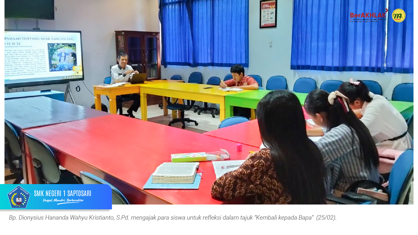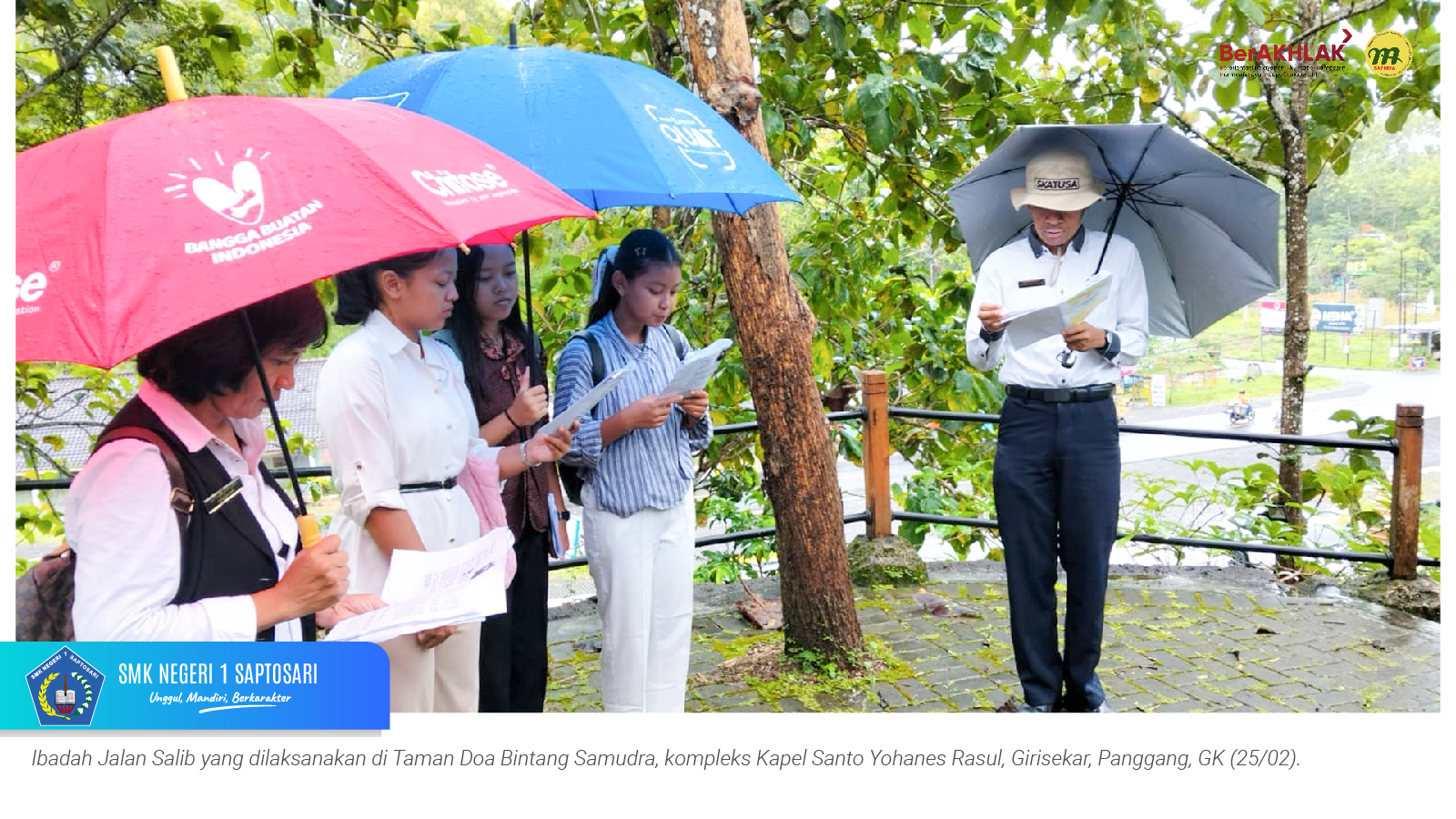 ww.smkn1saptosari.sch.id (GUNUNGKIDUL). SMKN 1 Saptosari melaksanakan kegiatan kerohanian bagi siswa pada 25–26 Februari 2026 sebagai upaya penguatan karakter dan spiritualitas peserta didik. Kegiatan ini diikuti siswa kelas X dan XI, dengan pembagian program sesuai keyakinan masing-masing.