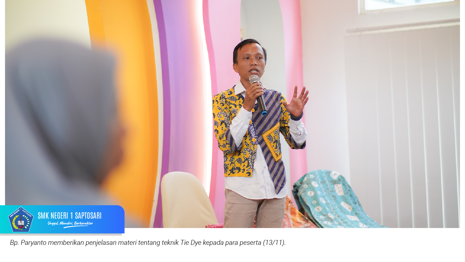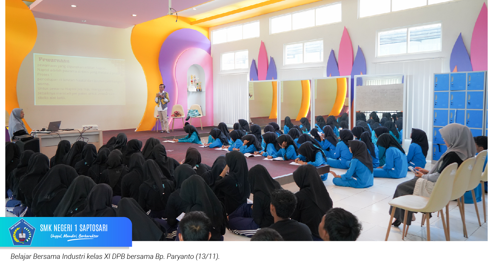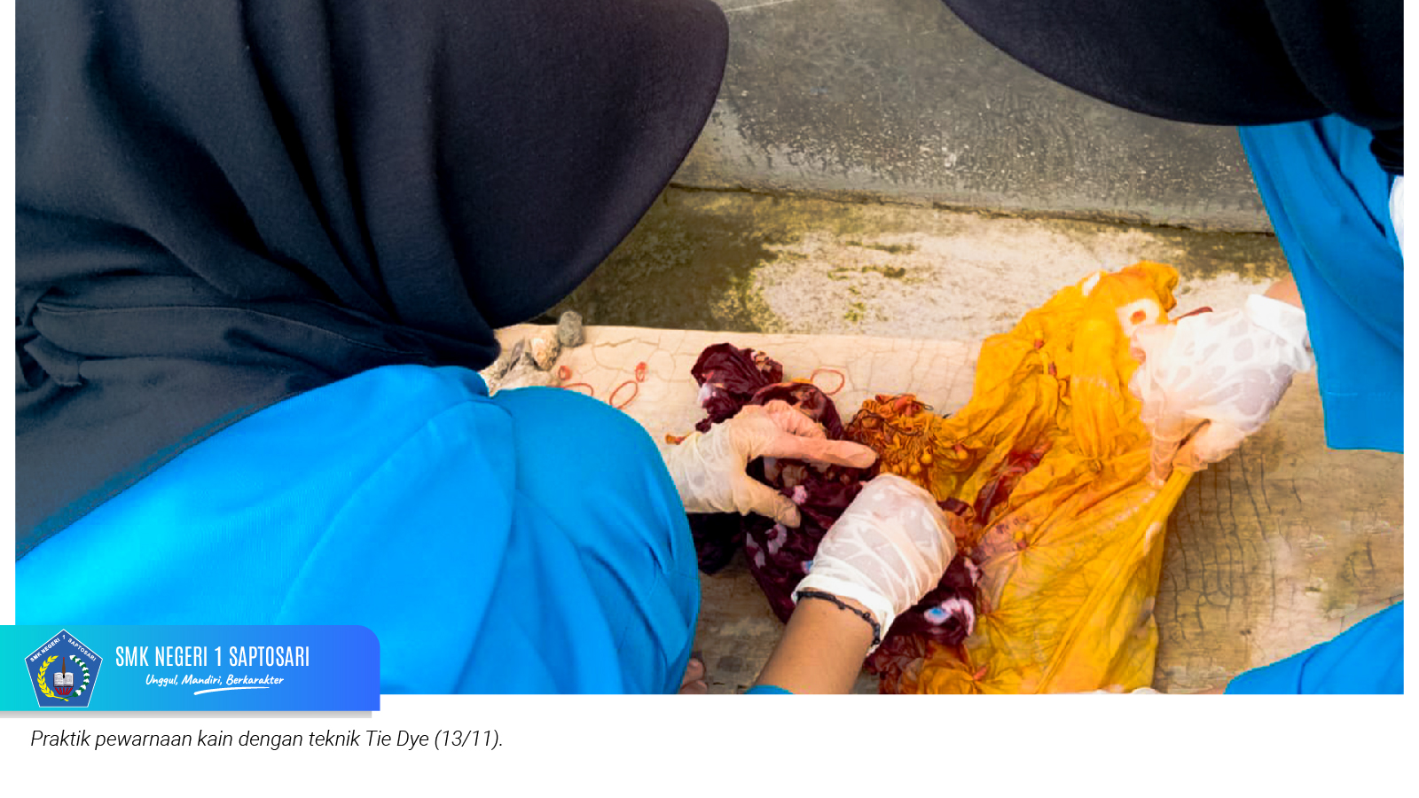 www.smkn1saptosari.sch.id (GUNUNGKIDUL). SMKN 1 Saptosari terus mendorong pembelajaran yang relevan dan selaras dengan perkembangan dunia industri. Salah satu wujud nyata dari upaya tersebut adalah kegiatan Belajar Bersama Industri yang kali ini mengangkat tema “Eksplorasi Tekstil – Tie Dye”.