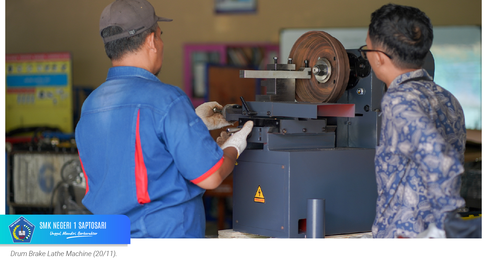Sementara itu, Drum Brake Lathe Machine berfungsi untuk membubut tromol rem (drum brake). Tromol yang telah aus atau memiliki permukaan tidak merata dapat menyebabkan rem bergetar atau tidak pakem. Melalui proses pembubutan dengan mesin ini, diameter dan permukaan tromol dapat dikembalikan pada kondisi ideal sesuai standar pabrikan. Teknologi pada mesin ini memungkinkan pembubutan dilakukan secara presisi sehingga hasil akhir sesuai kebutuhan perbaikan kendaraan.