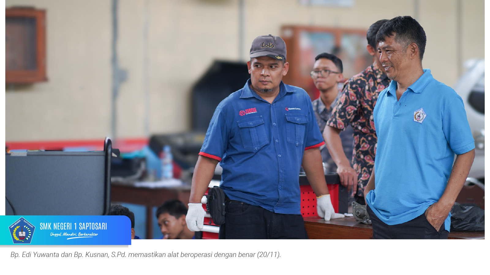 Pada kesempatan tersebut, Ketua Konsentrasi Keahlian Teknik Kendaraan Ringan, Bapak Kusnan S.Pd., menegaskan pentingnya pembelajaran berbasis industri bagi murid SMK. “murid SMKN 1 Saptosari dituntut memiliki kompetensi yang siap pakai ketika memasuki dunia kerja. Karena itu, kami terus berupaya menghadirkan pembelajaran yang relevan dengan kebutuhan industri,” ujar beliau.