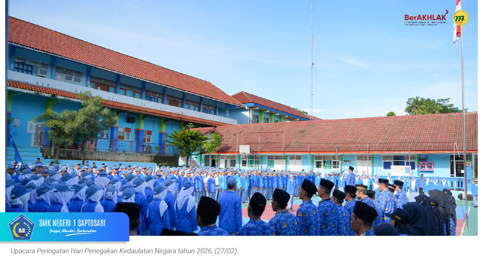 www.smkn1saptosasri.sch.id (GUNUNGKIDUL). SMKN 1 Saptosari melaksanakan upacara Peringatan Hari Penegakan Kedaulatan Negara pada Minggu (1/3/2026) di lapangan upacara SKATUSA Kegiatan ini diselenggarakan merujuk pada Edaran Pelaksanaan Upacara Peringatan Hari Penegakan Kedaulatan Negara Tahun 2026 dari Pemerintah Daerah Daerah Istimewa Yogyakarta Nomor: B/400.14.1.1/4/BR.7 tertanggal 20 Februari 2026.