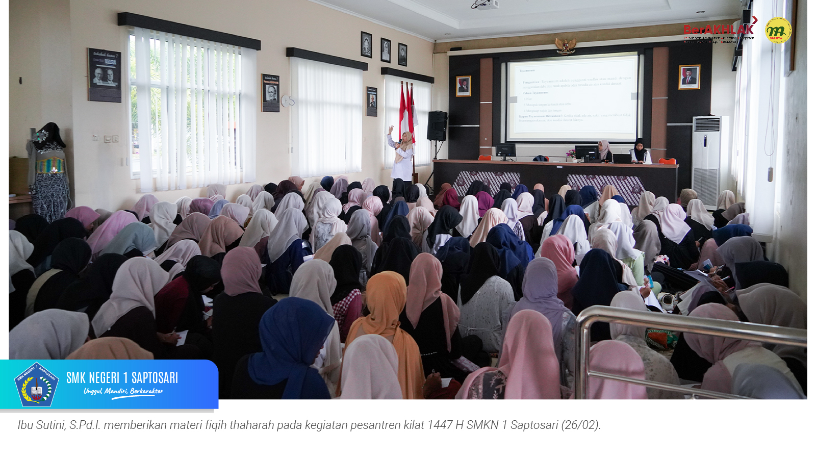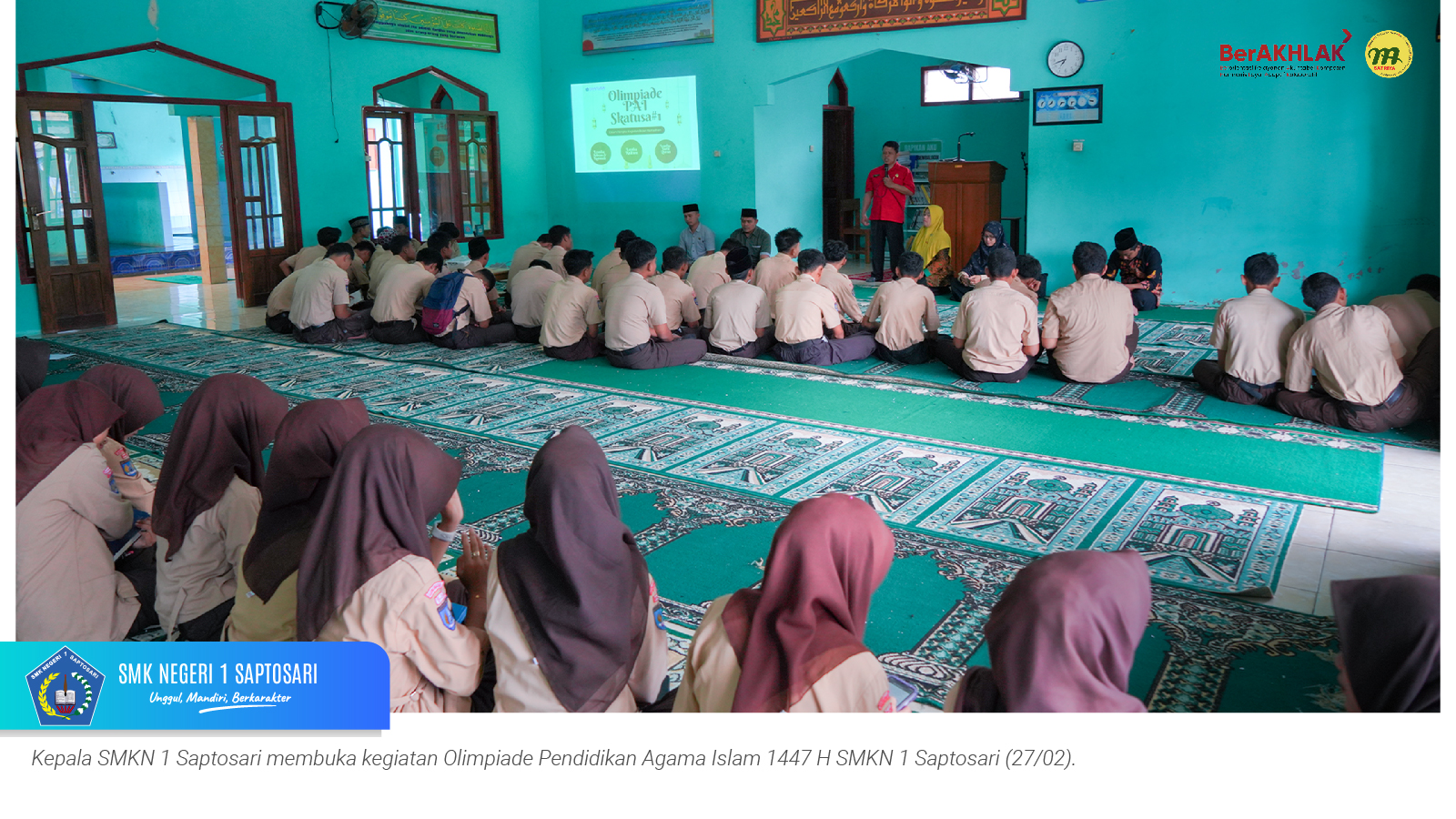 www.smkn1saptosari.sch.id (GUNUNGKIDUL). Dalam rangka mengisi bulan suci Ramadhan 1447 H, SMKN 1 Saptosari menyelenggarakan berbagai kegiatan keagamaan yang berlangsung pada 25–27 Februari 2026. Kegiatan tersebut meliputi Pesantren Kilat dan Olimpiade Pendidikan Agama Islam (PAI) yang diikuti oleh siswa Muslim sebagai bagian dari pembinaan karakter religius di lingkungan sekolah.