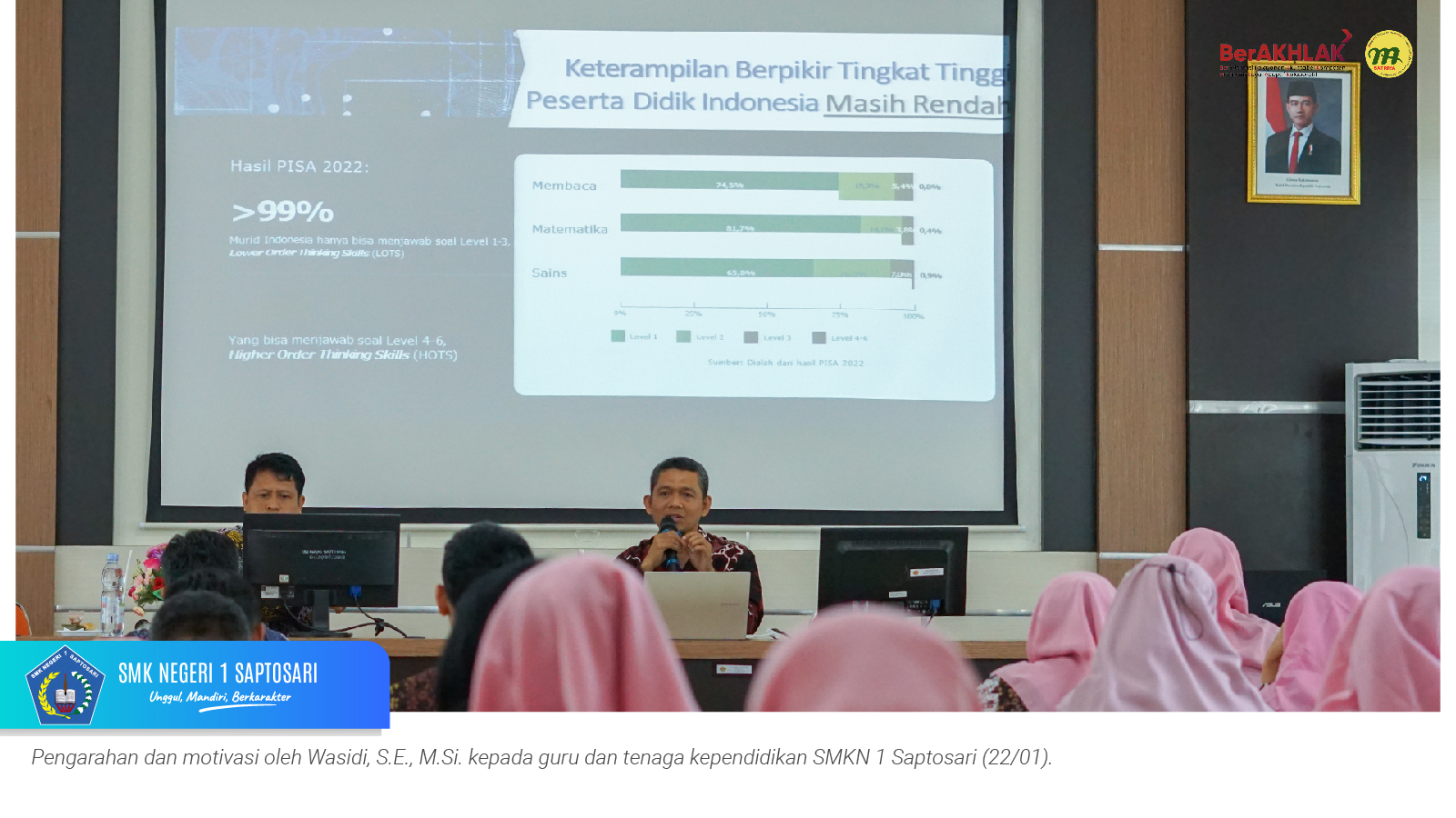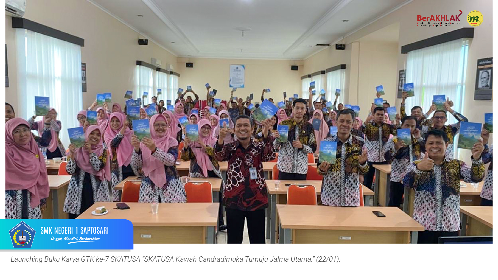 www.smkn1saptosari.sch.id (GUNUNGKIDUL). SMKN 1 Saptosari kembali meneguhkan komitmennya sebagai sekolah yang terus bertumbuh dan berkemajuan melalui tiga agenda besar yang diselenggarakan secara bersamaan, Kamis, 22 Januari 2026. Bertempat di Aula Sasana Amarta SKATUSA, kegiatan tersebut meliputi Capacity Building, Launching Buku Karya GTK ke-7 SKATUSA, serta SKATUSA Reward 2025 yang diikuti oleh seluruh guru dan tenaga kependidikan.