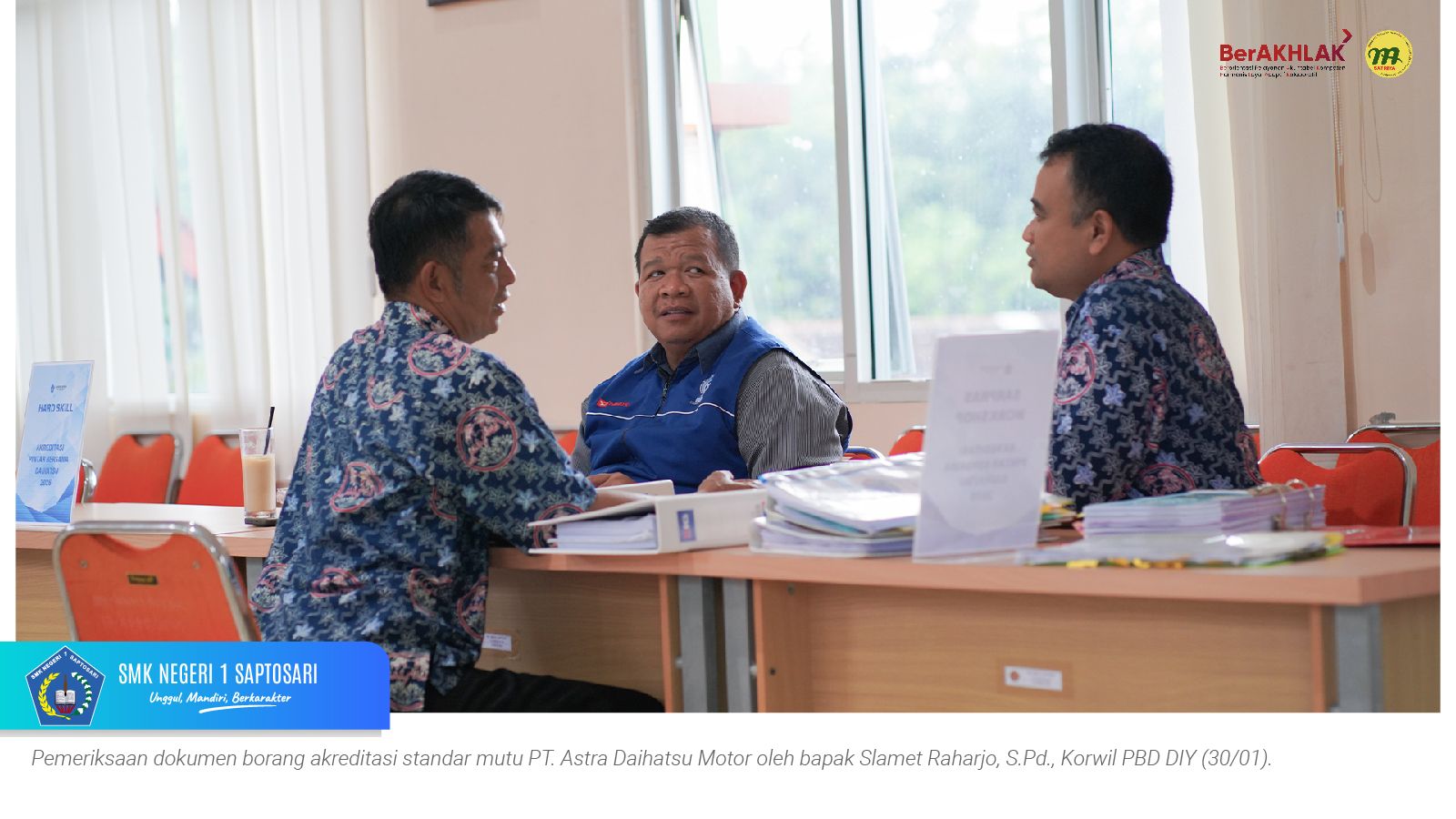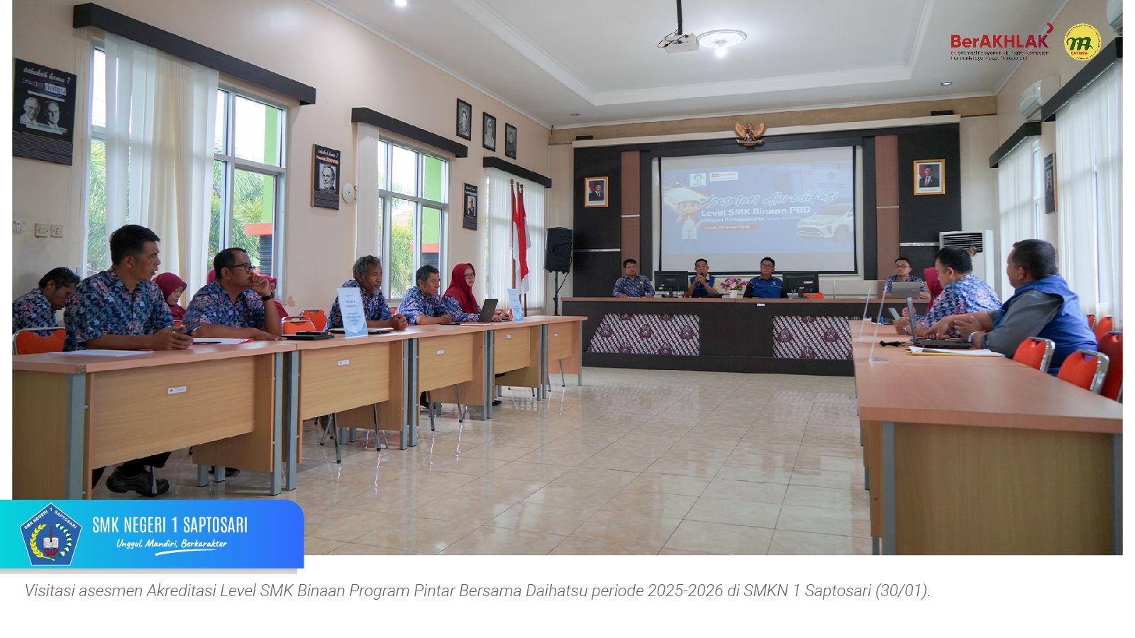 www.smkn1saptosari.sch.id (GUNUNGKIDUL). PT. Astra Daihatsu Motor (ADM) melakukan visitasi asesmen Akreditasi Level SMK Binaan Program Pintar Bersama Daihatsu (PBD) Wilayah Daerah Istimewa Yogyakarta di SMK Negeri 1 Saptosari (SKATUSA), Jumat (30/12/2026). Kegiatan ini bertujuan menilai konsistensi pelaksanaan program PBD serta manfaatnya bagi sekolah binaan selama periode 2025–2026.