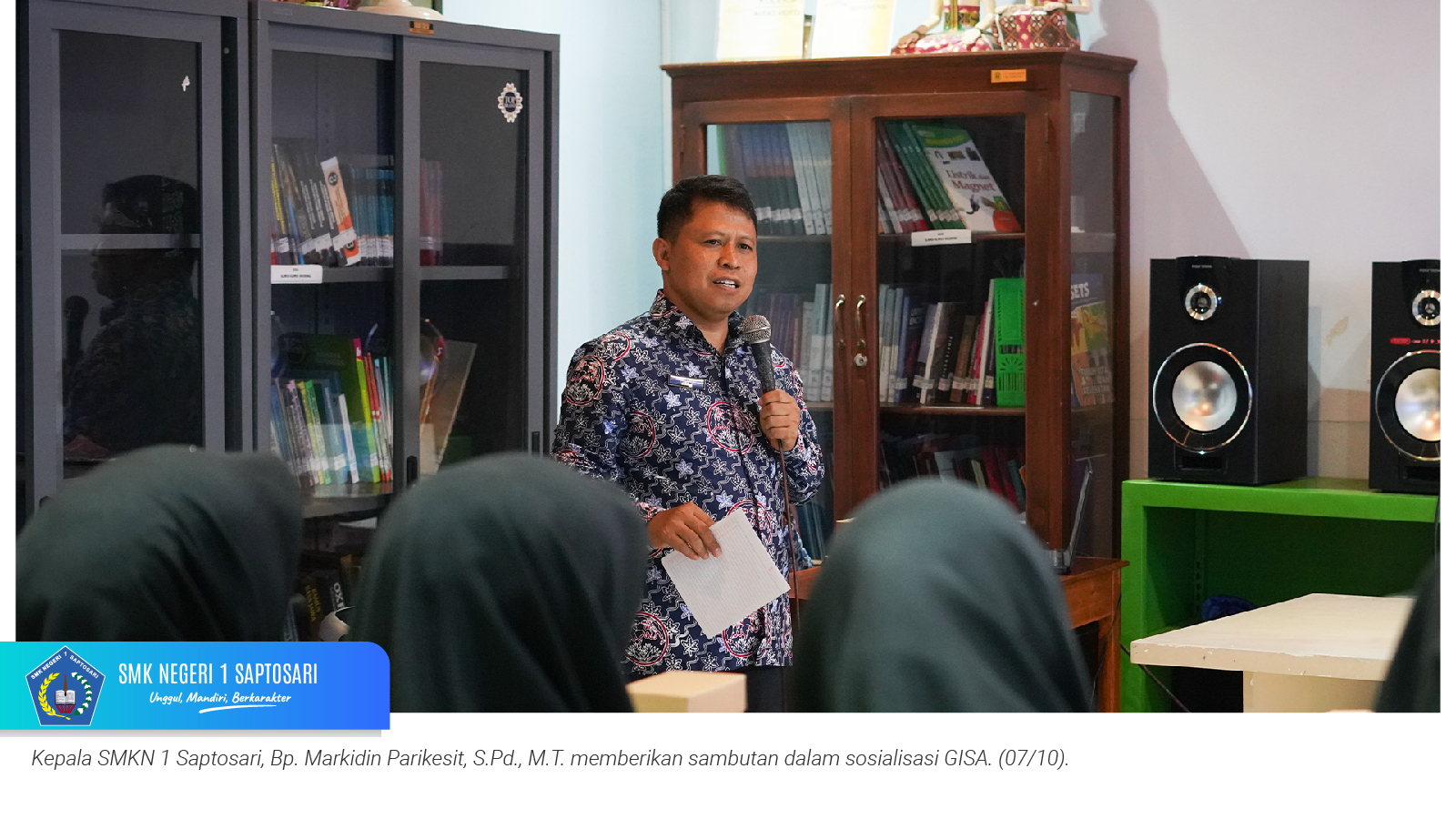 www.smkn1saptosari.sch.id (GUNUNGKIDUL). Dalam upaya meningkatkan pemahaman dan kesadaran masyarakat terhadap pentingnya administrasi kependudukan (adminduk), Dinas Kependudukan dan Pencatatan Sipil (Disdukcapil) Kabupaten Gunungkidul bekerja sama dengan SMKN 1 Saptosari menggelar kegiatan Sosialisasi Gerakan Indonesia Sadar Administrasi Kependudukan (GISA), Selasa (7/10/2025).