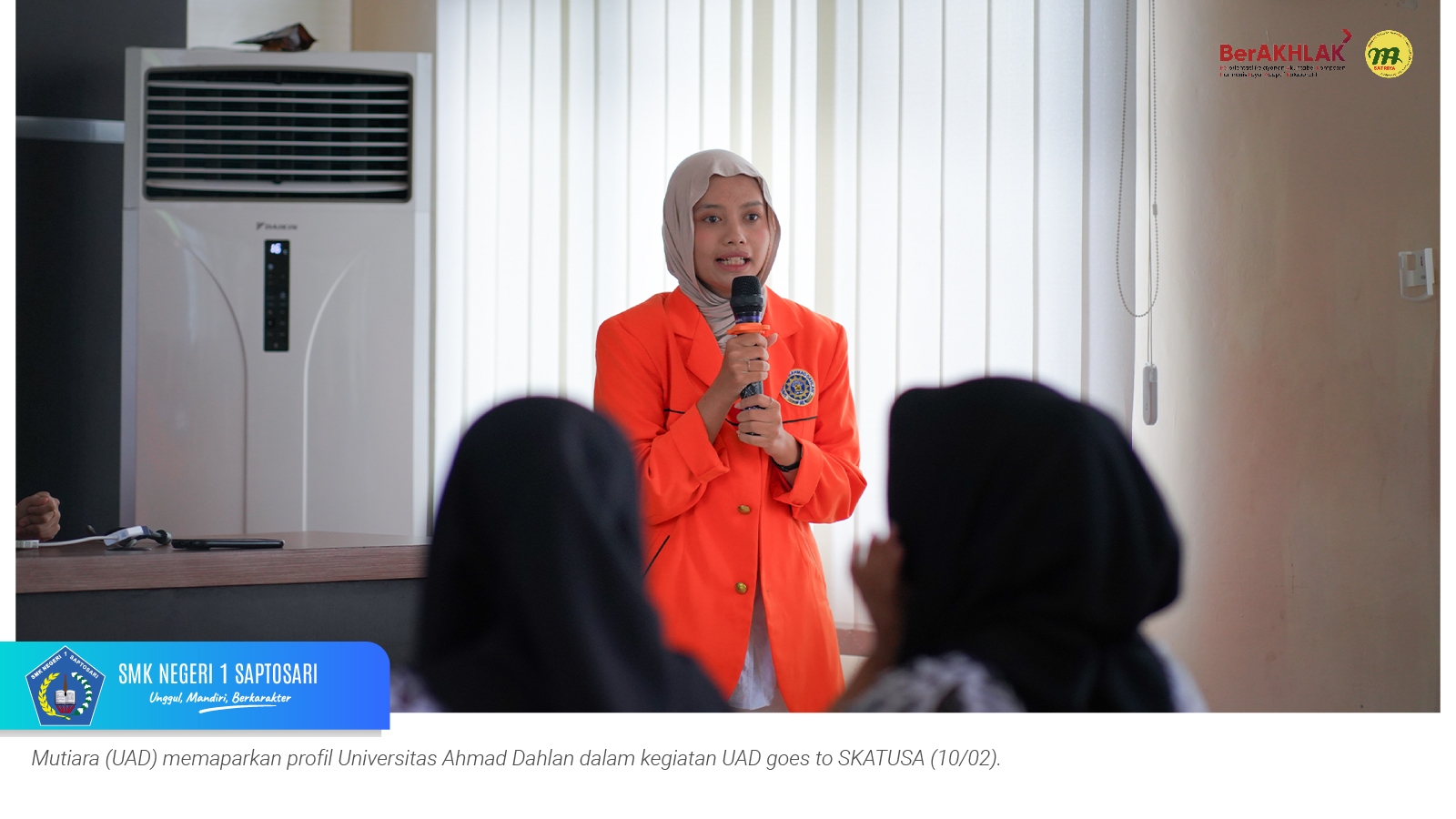 Sebagai langkah nyata, SMKN 1 Saptosari bekerja sama dengan Universitas Ahmad Dahlan (UAD) Yogyakarta menyelenggarakan kegiatan bertajuk “UAD Goes to SKATUSA” pada Selasa, 10 Februari 2026. Kegiatan yang berlangsung di Aula Sasana Amarta SMKN 1 Saptosari ini diikuti oleh siswa kelas XI yang memiliki minat melanjutkan pendidikan ke jenjang perguruan tinggi.